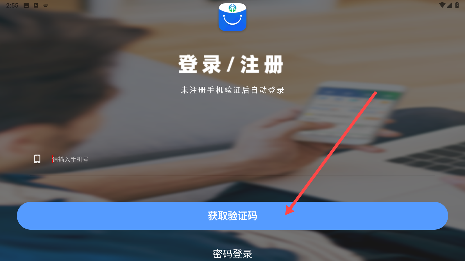 3、输入手机号后,点击【获取验证码】完成账号注册