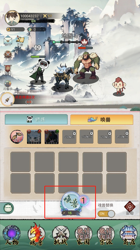 1、进入《斗兽至高天》后,玩家可通过点击幻兽获取经验值。