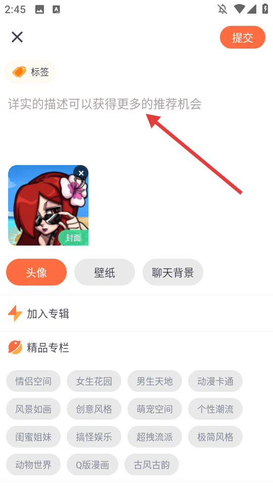 3、最后我们再来编辑一下附带的内容,都完成后点击【提交】