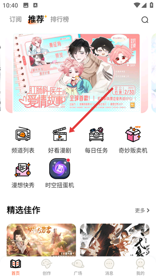 1、进入漫想世界,在首页点击【好看漫剧】选项呢。