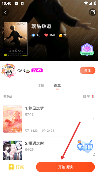 3、进入【璃晶叛道】页面,点击【开始阅读】按钮啦。