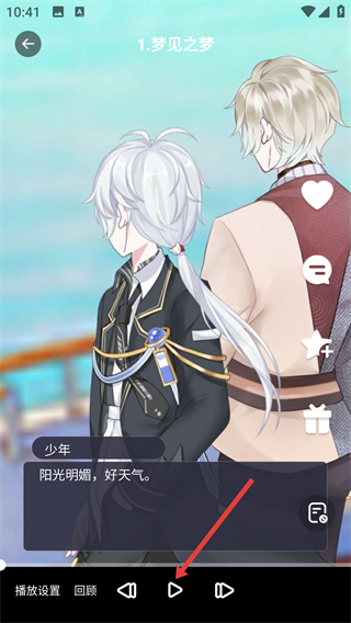 4、进入阅读界面,点底部播放键推进剧情体验吧。