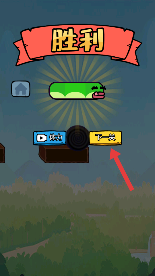 4、当苹果蛇接触【黑洞】,出现【胜利】提示后,点击【下一关】按钮,挑战新关卡。