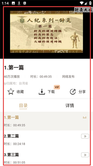 2、直观真人取穴视频:真人亲自演示,能让用户快速、直观且准确地找到穴位,便于实际操作学习。