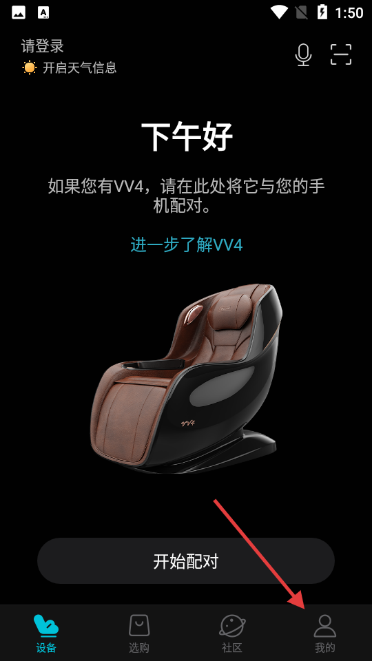 2、登录后,点击设备管理界面中的【开始配对】按钮,准备连接设备。