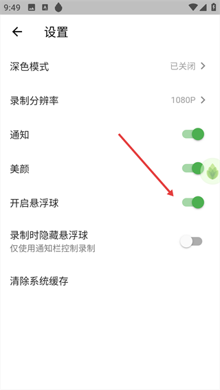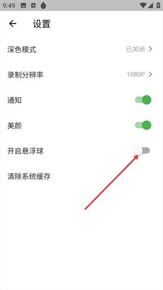 3、进入设置页面,点击【开启悬浮球】对应的开关按钮。