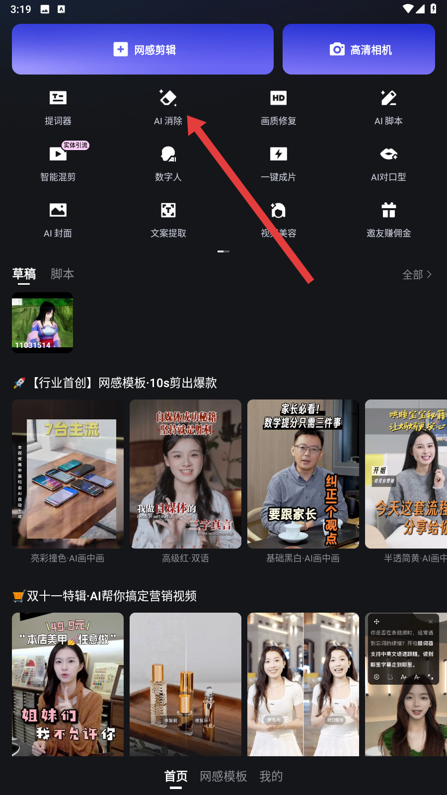 1.AI脚本生成:输入关键词,快速生成口播脚本、小红书笔记等网感文案。