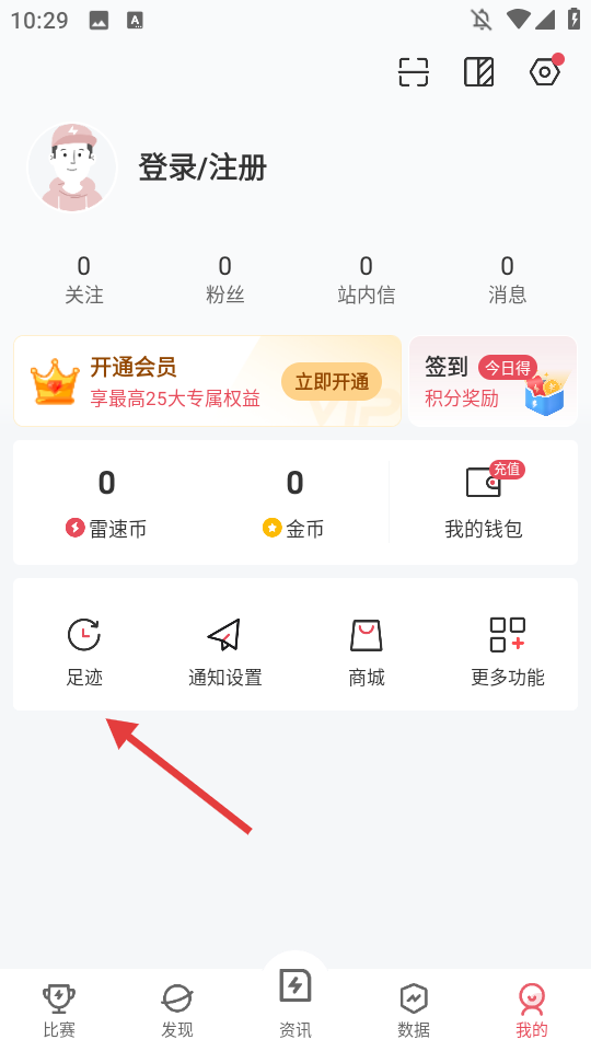 2、在个人页面点击【足迹】,进入资讯浏览记录页面。