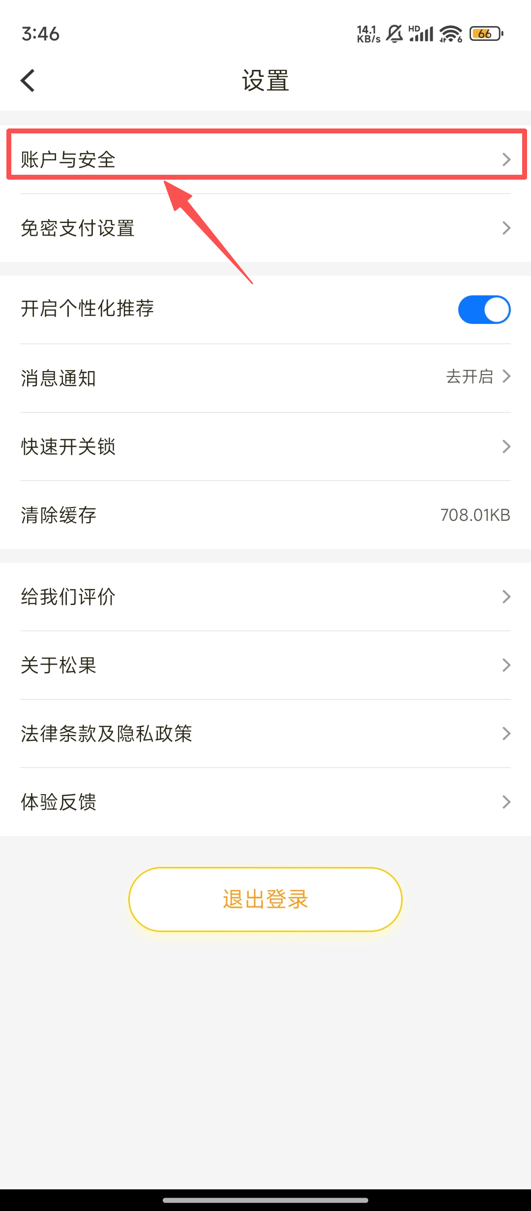 2、在设置界面,点击【账户与安全】,进入账户安全相关设置页面。
