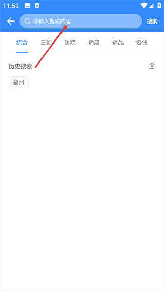 1、打开app,点击顶部搜索框,进入搜索界面。