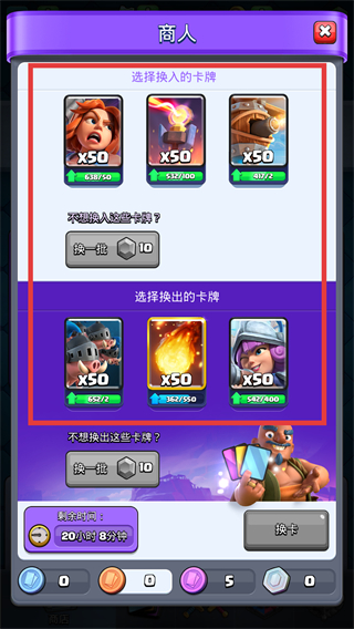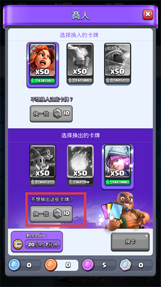 3、换出卡牌时若不满意现有选项,消耗资源点击【换一批】刷新,获取更合适的卡牌进行交换。