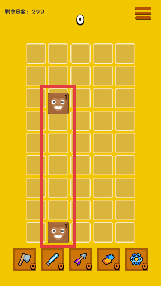 2、进入游戏后,留意上方显示的【剩余回合:300】,在黄色方格区域内,滑动屏幕移动方块将动物进行放置。