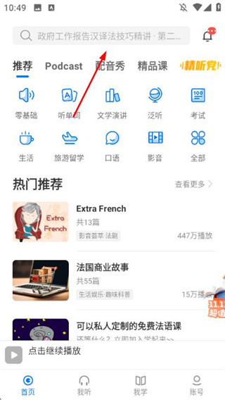1.海量资源:收录海量法语听力资源,包括日常对话、商务法语、名人演讲等。