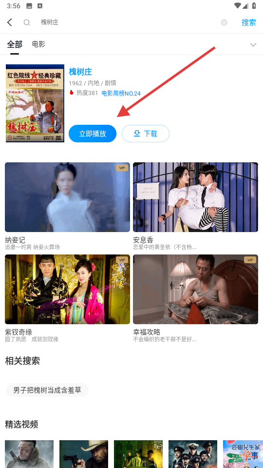 2、找到目标影片后,点击【立即播放】,进入影片播放页。