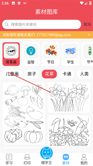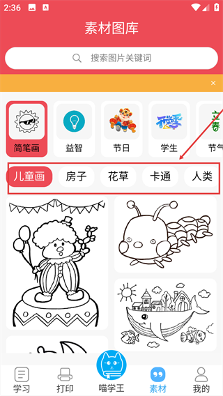 3.【素材图库】拥有上百万张图片素材,通过搜索即可找到所需内容并进行打印,资源丰富应有尽有。