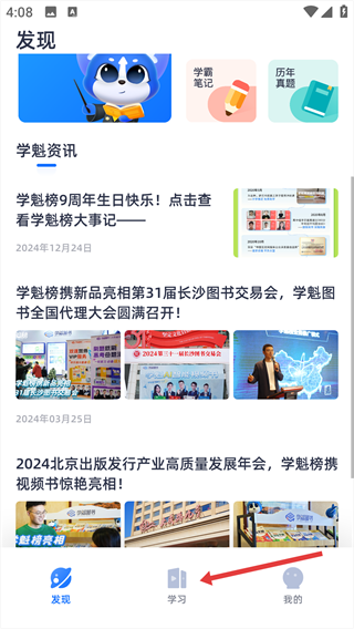 1、点击底部【学习】按钮,进入学习页面。