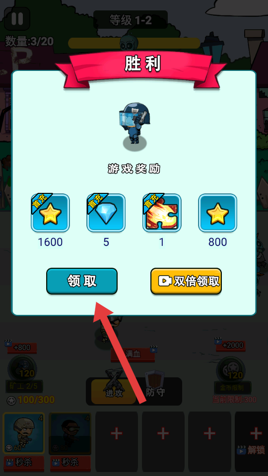 2、进入关卡后,点击下方对应【士兵】图标,消耗金币召唤士兵参战,积累【数量】进度。