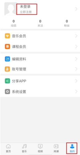 1、安装完成后,打开应用,点击右下角“我的”,再选择“未登录”进入登录界面。