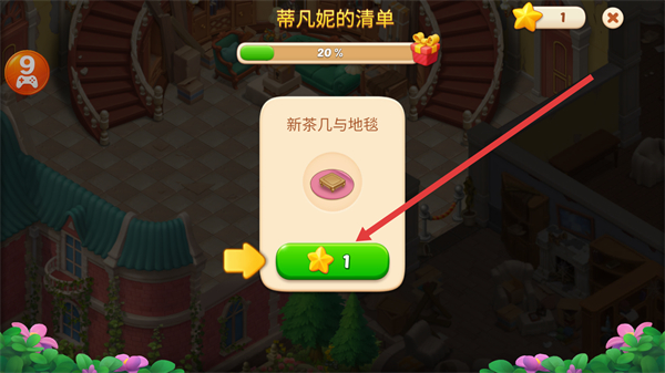 4、解锁新家具奖励时,消耗1颗星星完成清单。