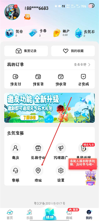 2、在个人中心页面找到地址按钮,点击该按钮进入地址管理界面。