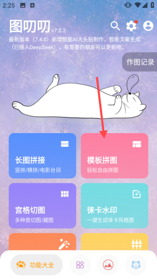 1、打开软件,根据自己的需求选择不同的功能板块,以模版拼图为例