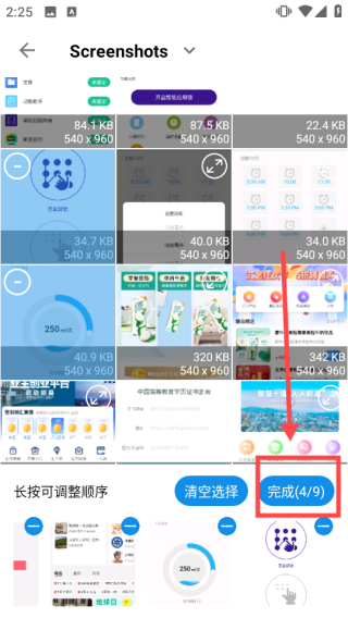 2、选取需要拼图的图片,点击【完成】进入下一界面