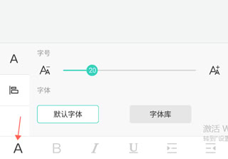3、点击下方【A】图标,显示字号调整选项,向右滑动可增大文字尺寸。