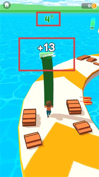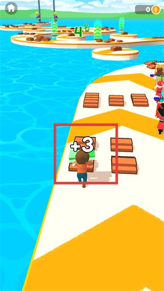 2、靠近赛道上的【+3】道具,拾取后可增加搭建桥梁的材料数量,助力后续搭桥操作。