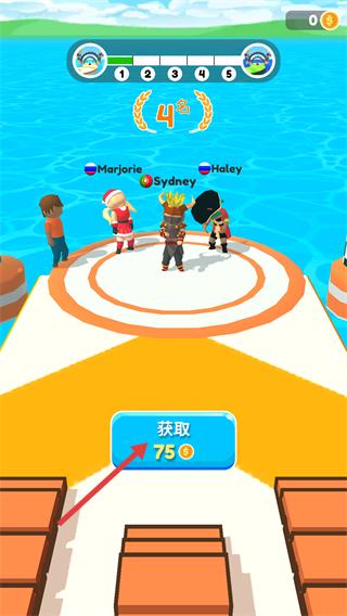 4、关卡结束后,点击【获取】按钮消耗【75】货币,领取当前排名对应的奖励,结算关卡。