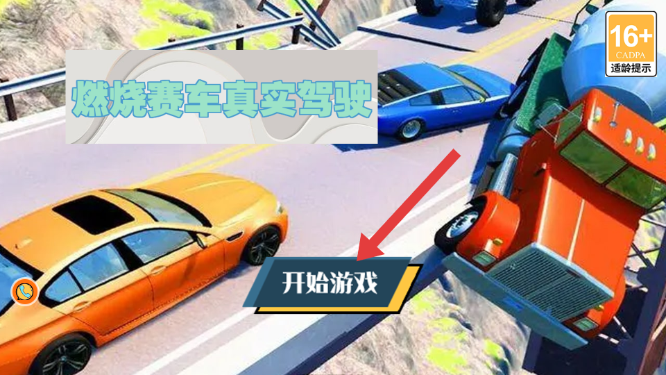 1、在游戏初始界面,点击【开始游戏】按钮,进入【燃烧赛车真实驾驶】的游戏关卡。