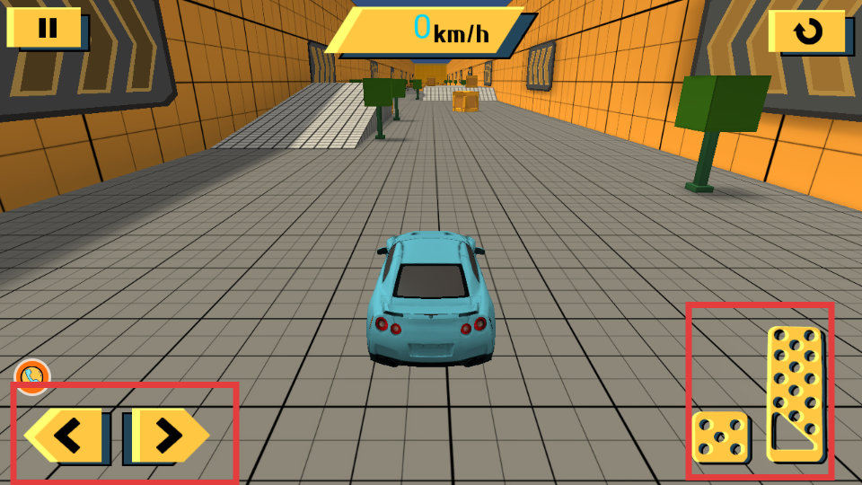 2、进入游戏场景后,利用左侧的【方向按钮】控制赛车转向,右侧的【踏板按钮】控制赛车的加速和刹车。