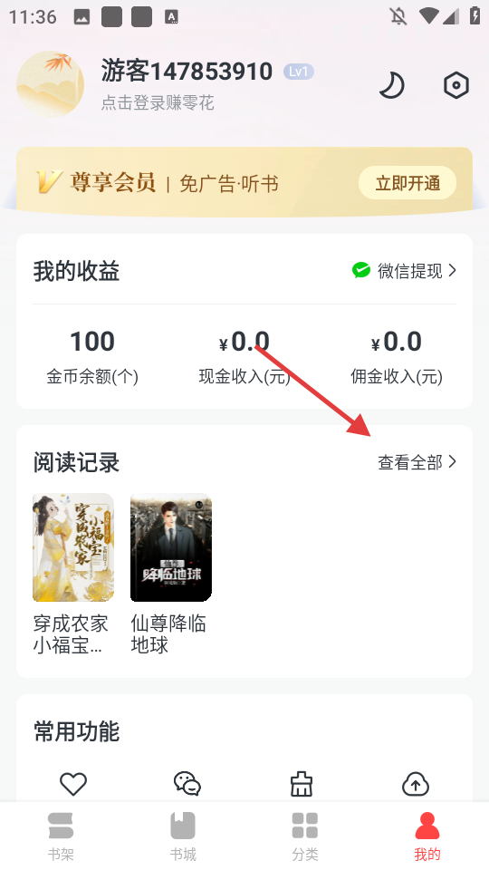 2、点击【阅读记录-查看全部】,进入阅读记录页面。