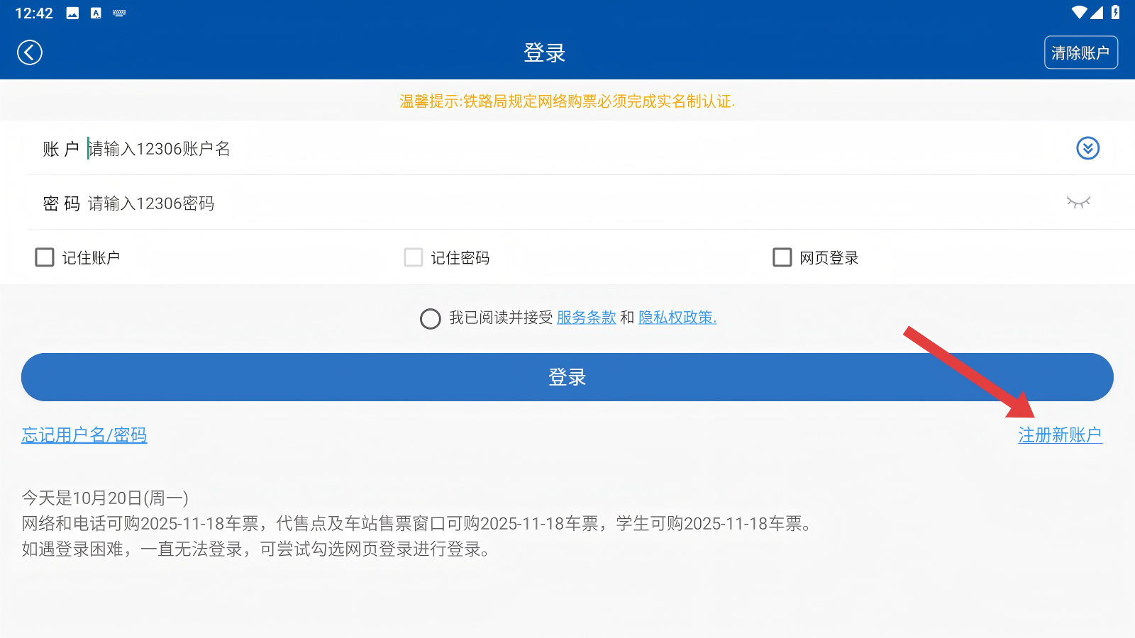 2、在登录界面,除了输入账户密码登录,咱还能点击右下角【注册新账户】,去创建新账号哟。