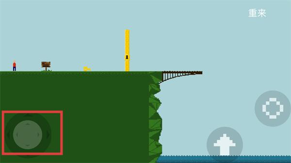 2、操控左侧移动按钮,控制角色向右侧区域移动,靠近场景中的道具与桥梁位置。