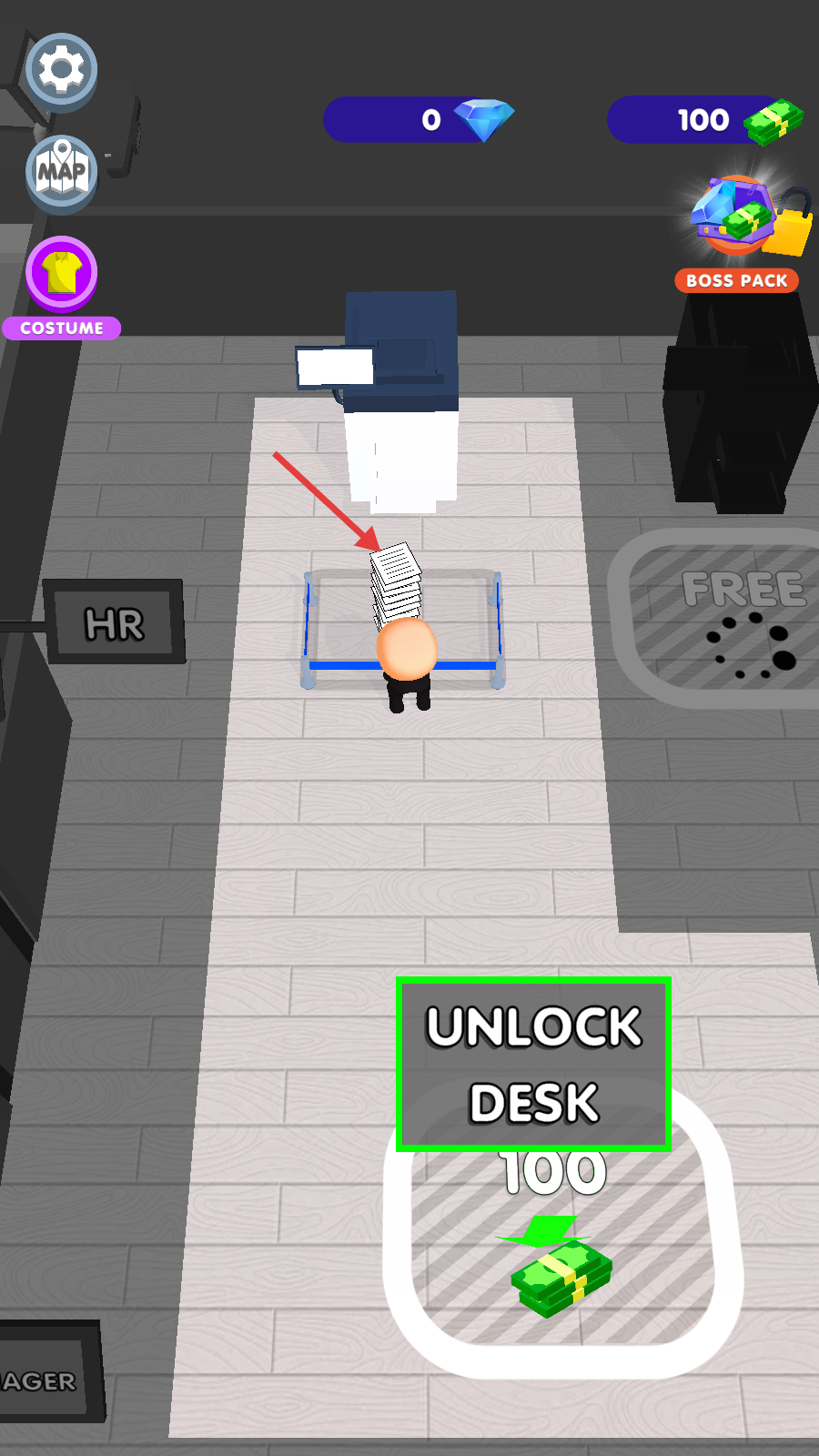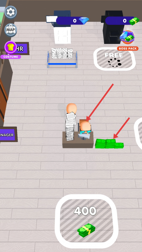 3、解锁办公桌后,将纸张送到办公桌处,可获得更多资金。