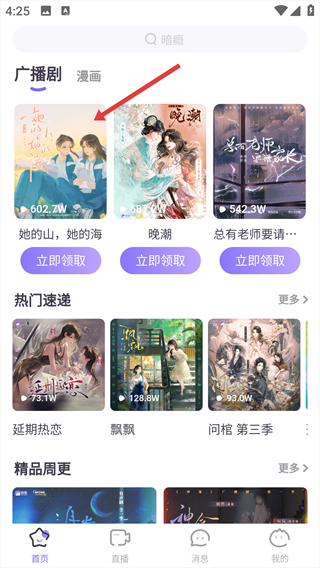1、在首页【广播剧】板块,选择感兴趣的广播剧。