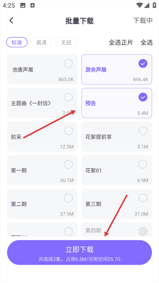 4、选择目标剧集,确认后点击底部【立即下载】。