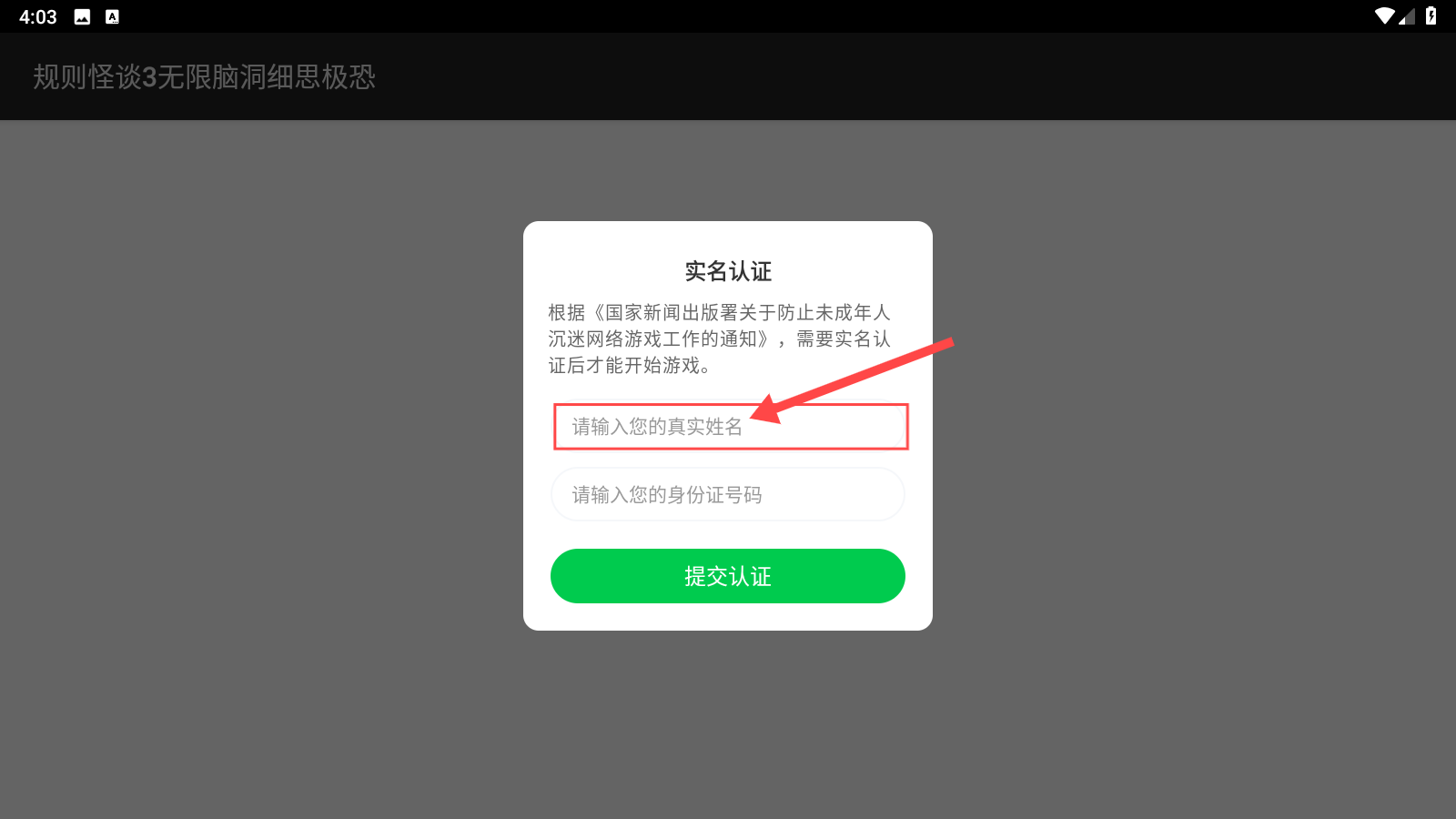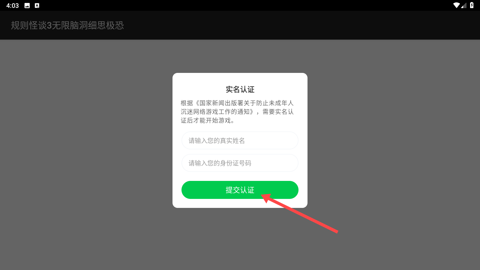 3、最后,玩家确认信息无误后,点击【提交认证】即可开始游玩