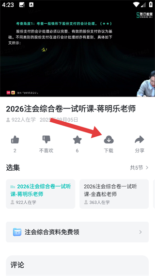 3、进入课程详情后,我们点击【下载】按钮,进入视频下载选择界面哦。
