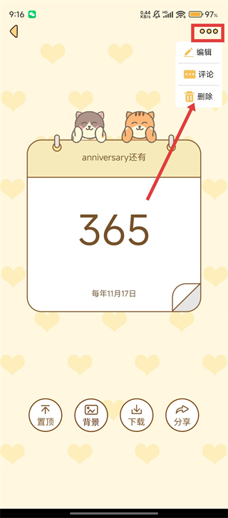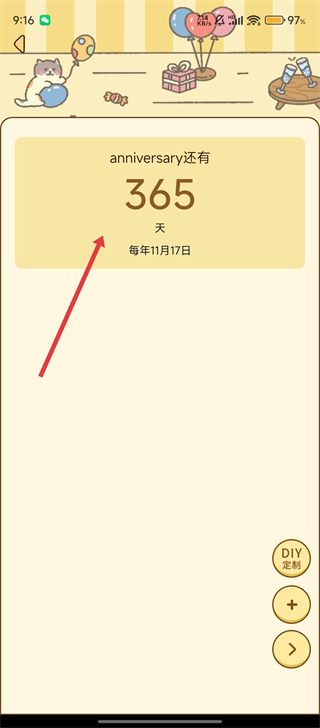 2、进入后可看到【anniversary】的倒计时信息,若要删除,点击该信息进入功能入口哦。
