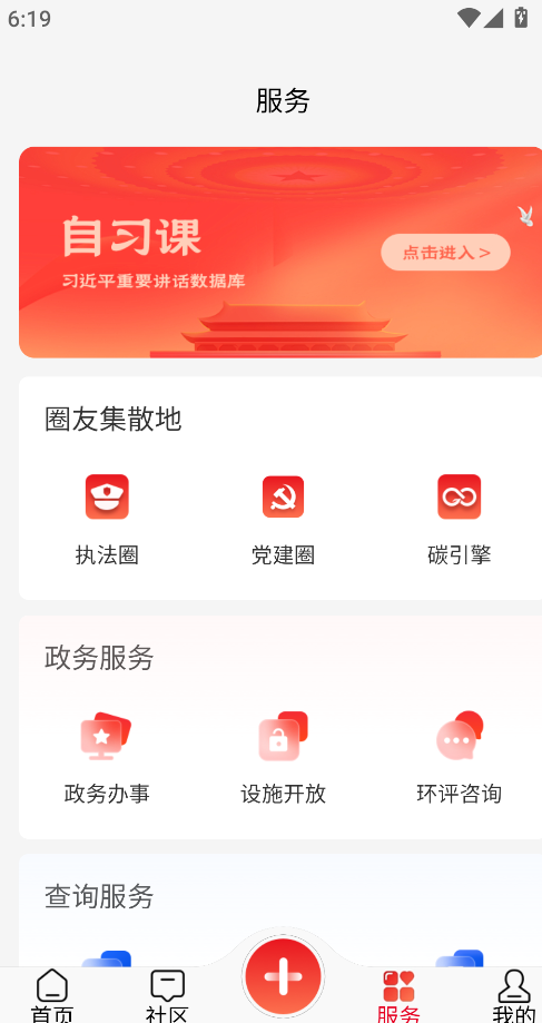 3、服务板块包括交流广场、政务入口和信息查询。