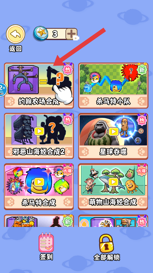 1、进入游戏界面,点击【约翰农场合成】选项,开启合成挑战之旅。