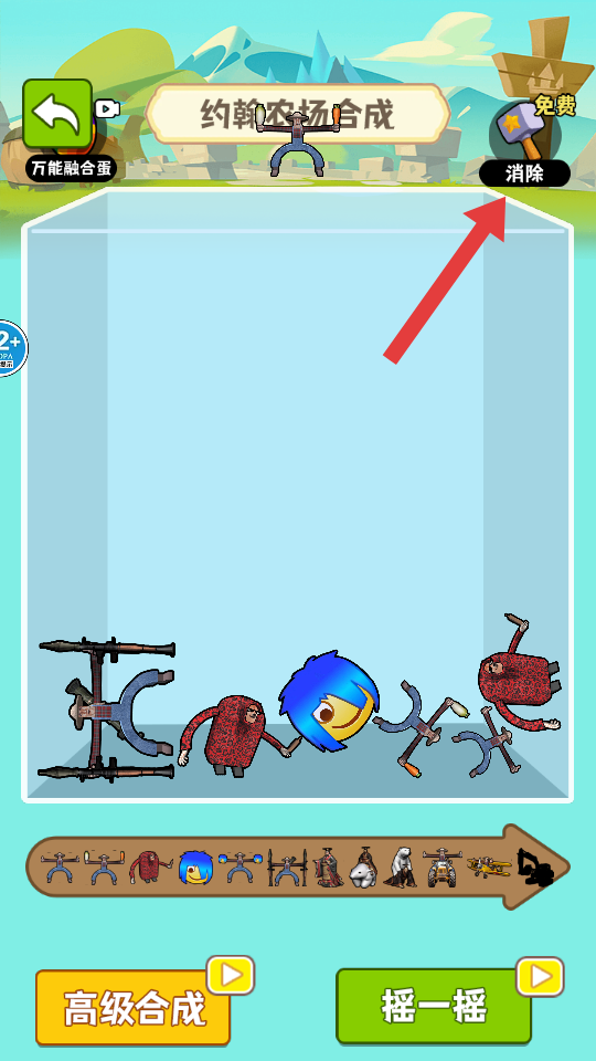 4、在合成的过程中,角色合成处于混乱时,点击【消除】进行消除角色可重新排列。