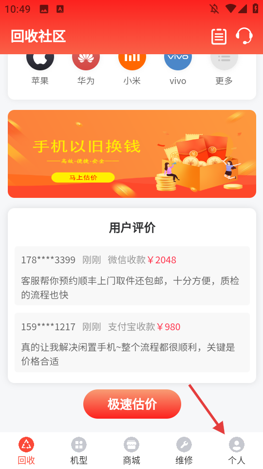 回收社区是聚焦二手3C产品交易的垂直平台,集成手机、平板、手表等全品类数码产品回收与买卖服务。支持主流品牌新旧机型估价,以“高价回收+全网低价”双模式运作,提供顺丰包邮、当天付款等高效服务。独创“先打款后寄送”流程,搭配70项官方验机质检与专业工程师监审,保障交易透明安全。用户无需线下奔波,一键下单即可完成闲置设备变现,打造便捷可信的环保回收生态链。