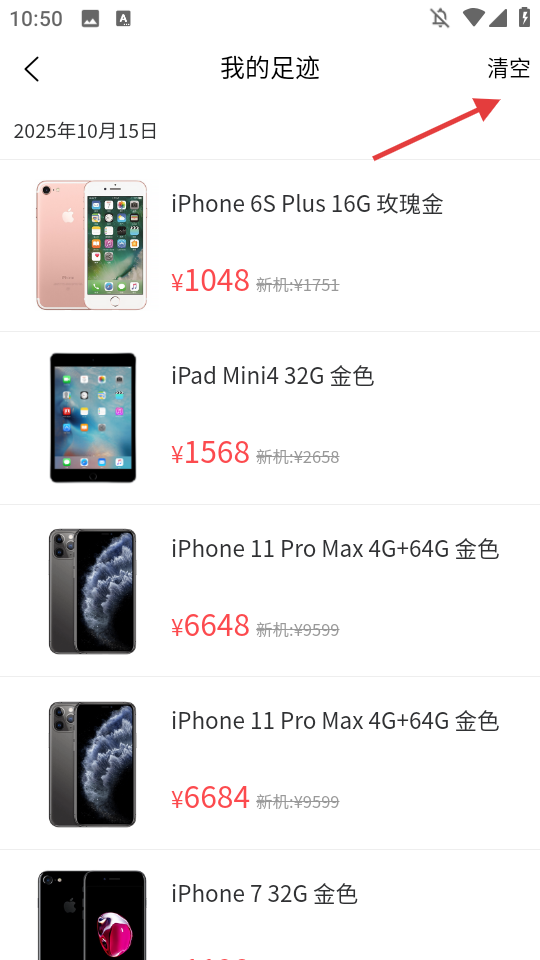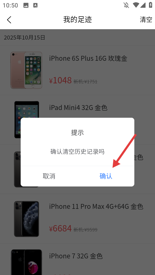 3、在我的足迹界面点击【清空】,弹出确认提示框。