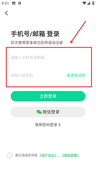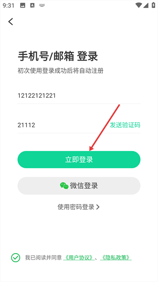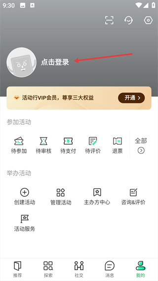 2、进入“我的”页面后,点击“点击登录”选项,进入账号登录界面。