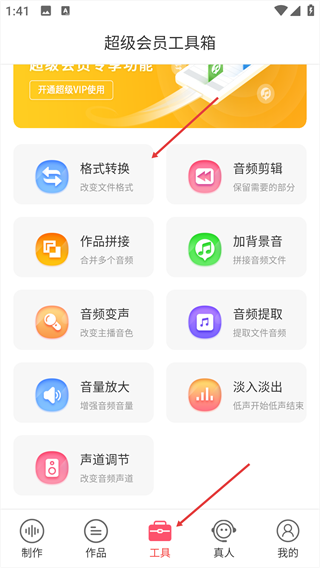 1、进入【工具】页面,在功能模块中找到【格式转换】选项并点击。