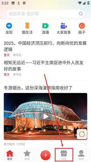 2、进入【酷生活】频道点击视频观看烟台相关生活分享。