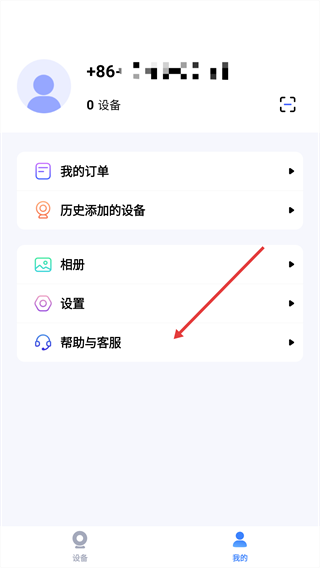 2、在个人中心页面,选择“帮助与客服”选项。