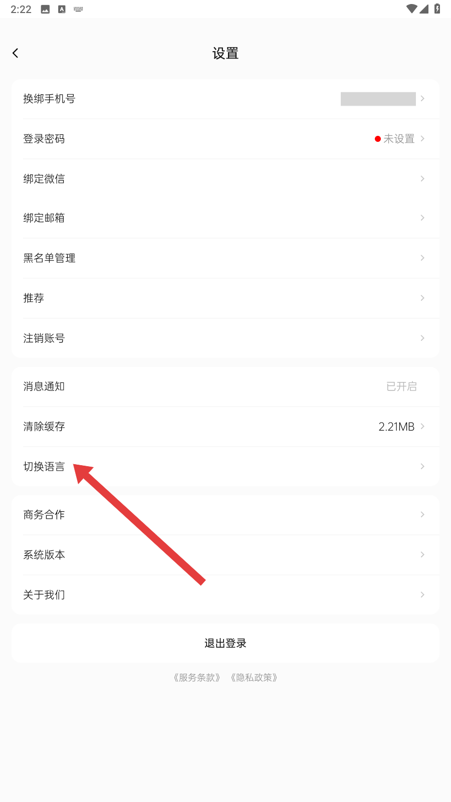 3、进入设置后,找到【切换语言】选项,点击它进入语言选择页面哟。